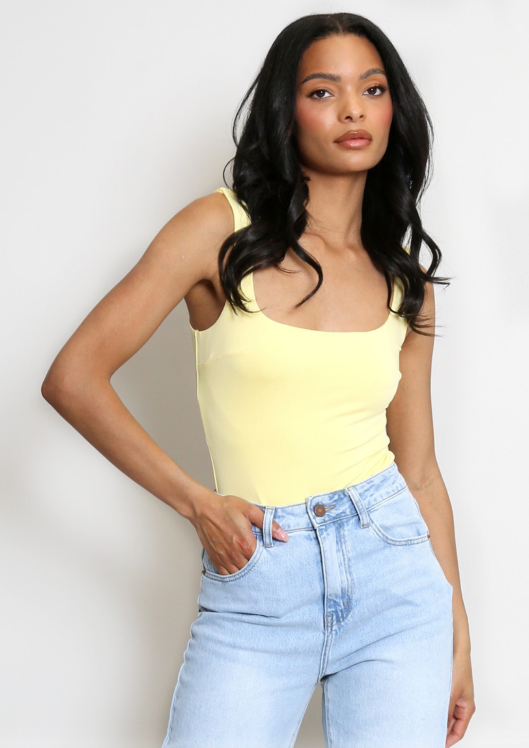Yellow Square Neck Bodysuit